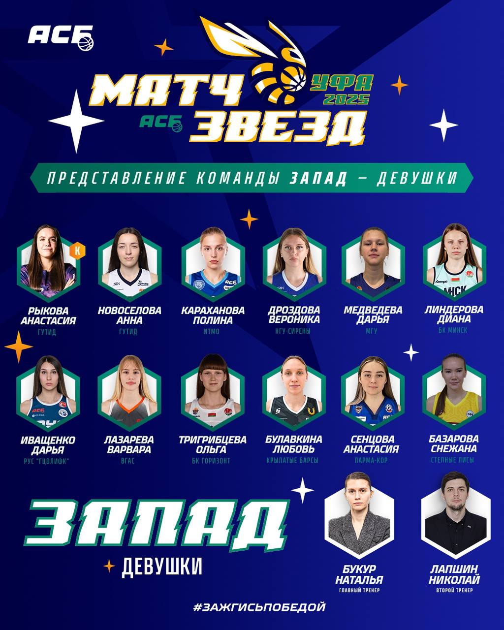 Игрок нашего клуба Диана Линдерова примет участие в "Матче Звезд АСБ 2025", который пройдет 24 января в Уфе. Сильнейшие игроки Ассоциации студенческого баскетбола соберутся, чтобы устроить настоящий праздник баскетбола! Наша спортсменка будет выступать за команду "Запад".