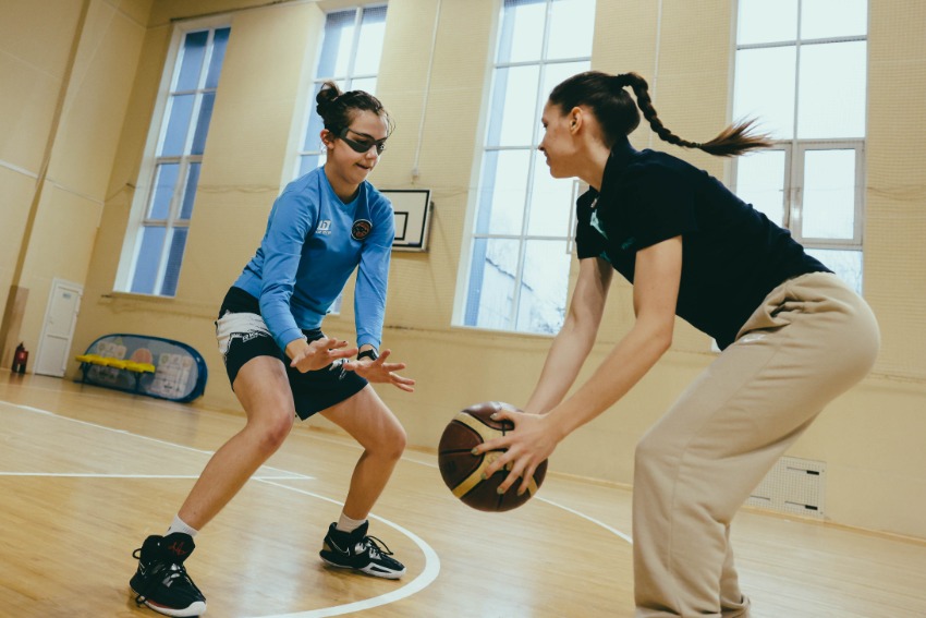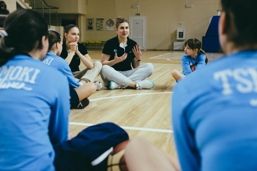 После знакомства и небольшой разминки, Ирина Венская и Евгения Игнатенко разделили команду на две группы и продемонстрировали различные упражнения и навыки по ведению мяча, защите, броскам, обыгрышам, включили в процесс игровые моменты.