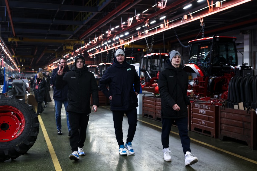 Спортсмены ознакомились с историей завода, процессом сборки тракторов и деталей, посетили производственные цехи.