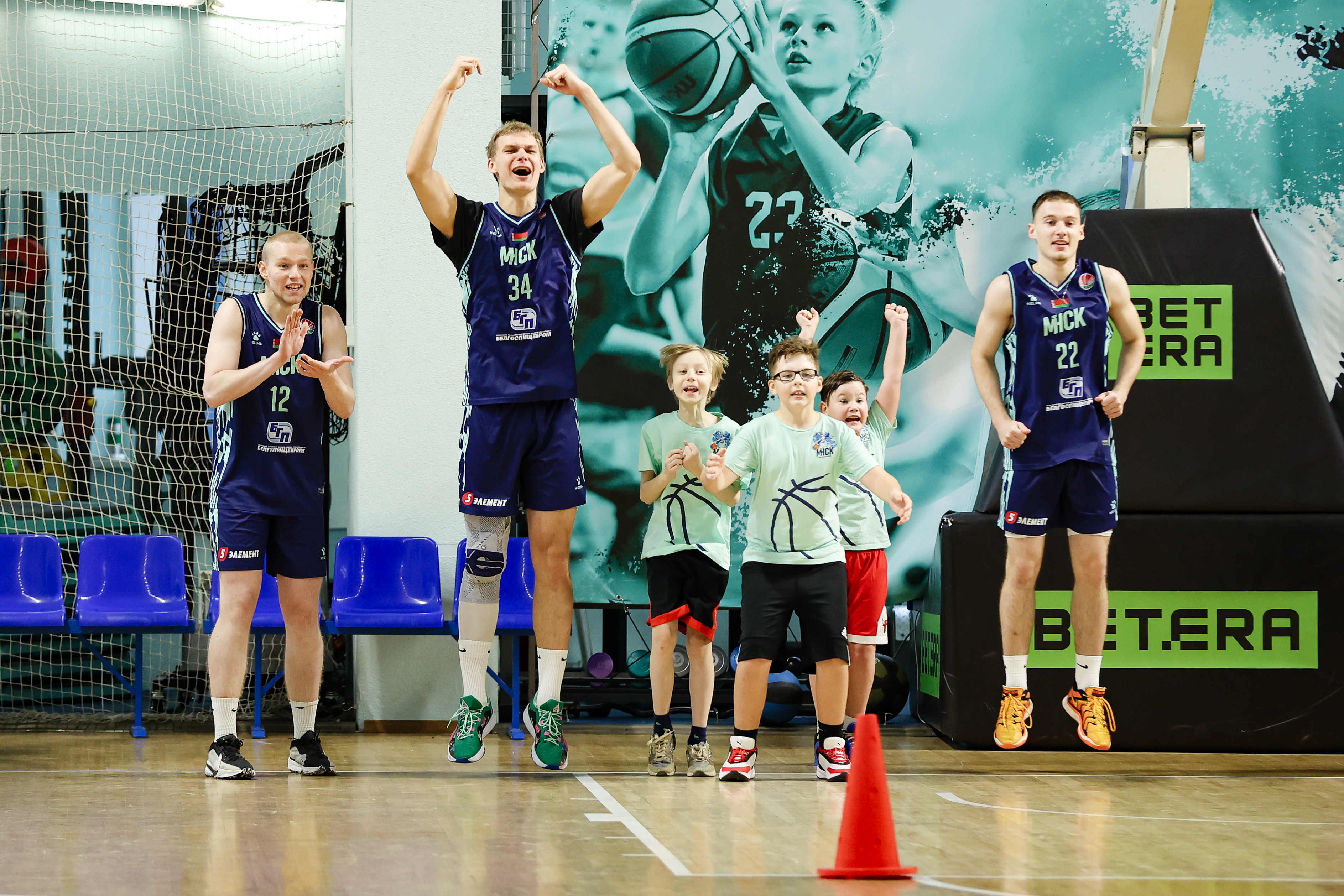 В финале встречи игроки «МИНСКА» вручили юным баскетболистам памятные сувениры и сделали общую фотографию на память о праздничном событии.